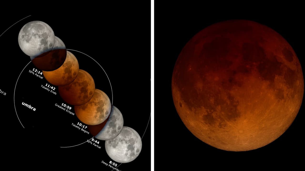 En la madrugada del martes 8 de noviembre, cerca de las 4 am, se pudo apreciar desde Nueva York el eclipse total de ‘Luna de Sangre’ justo para el día de las elecciones intermedias en Estados Unidos. También fue visible en otros lugares de la costa este de Estados Unidos, en Centroamérica, Ecuador, Colombia y ciertas partes de Venezuela y Perú; además de Asia, Australia y Nueva Zelanda, según datos de la NASA.