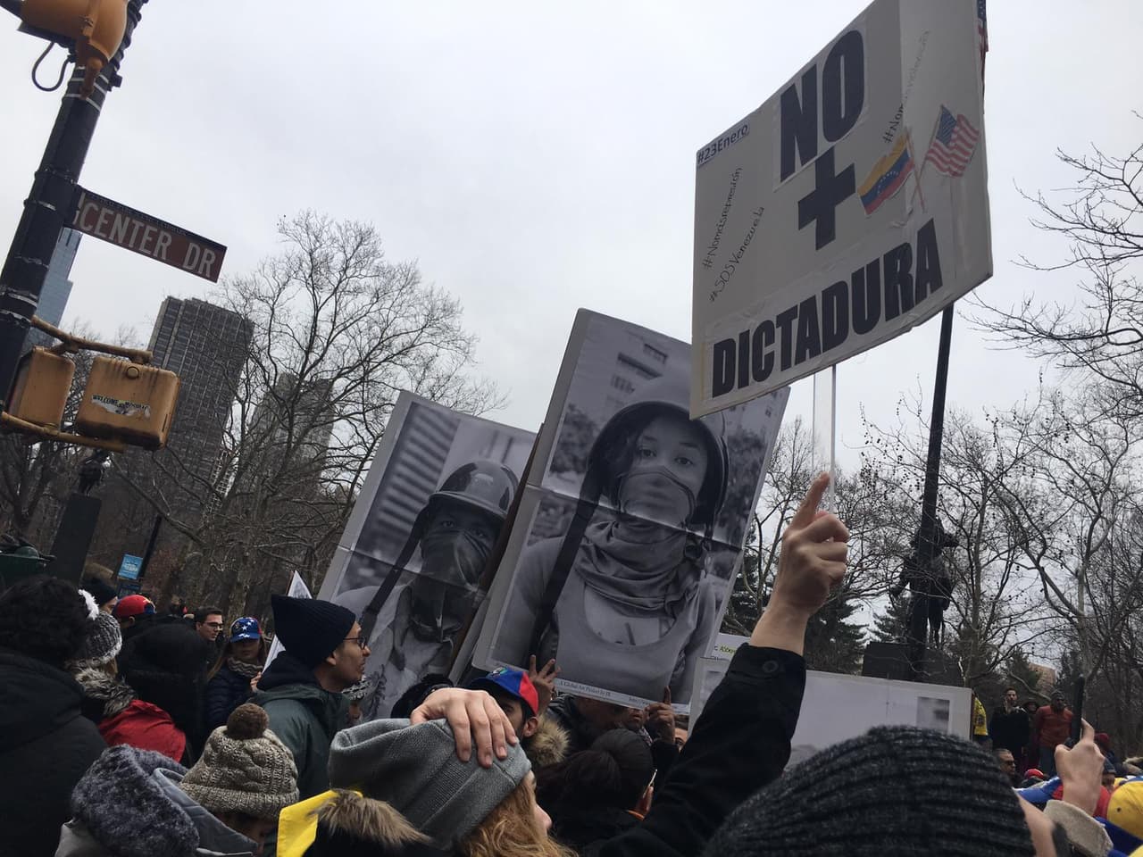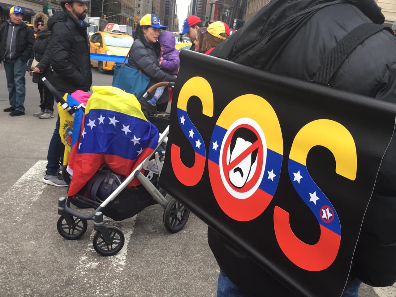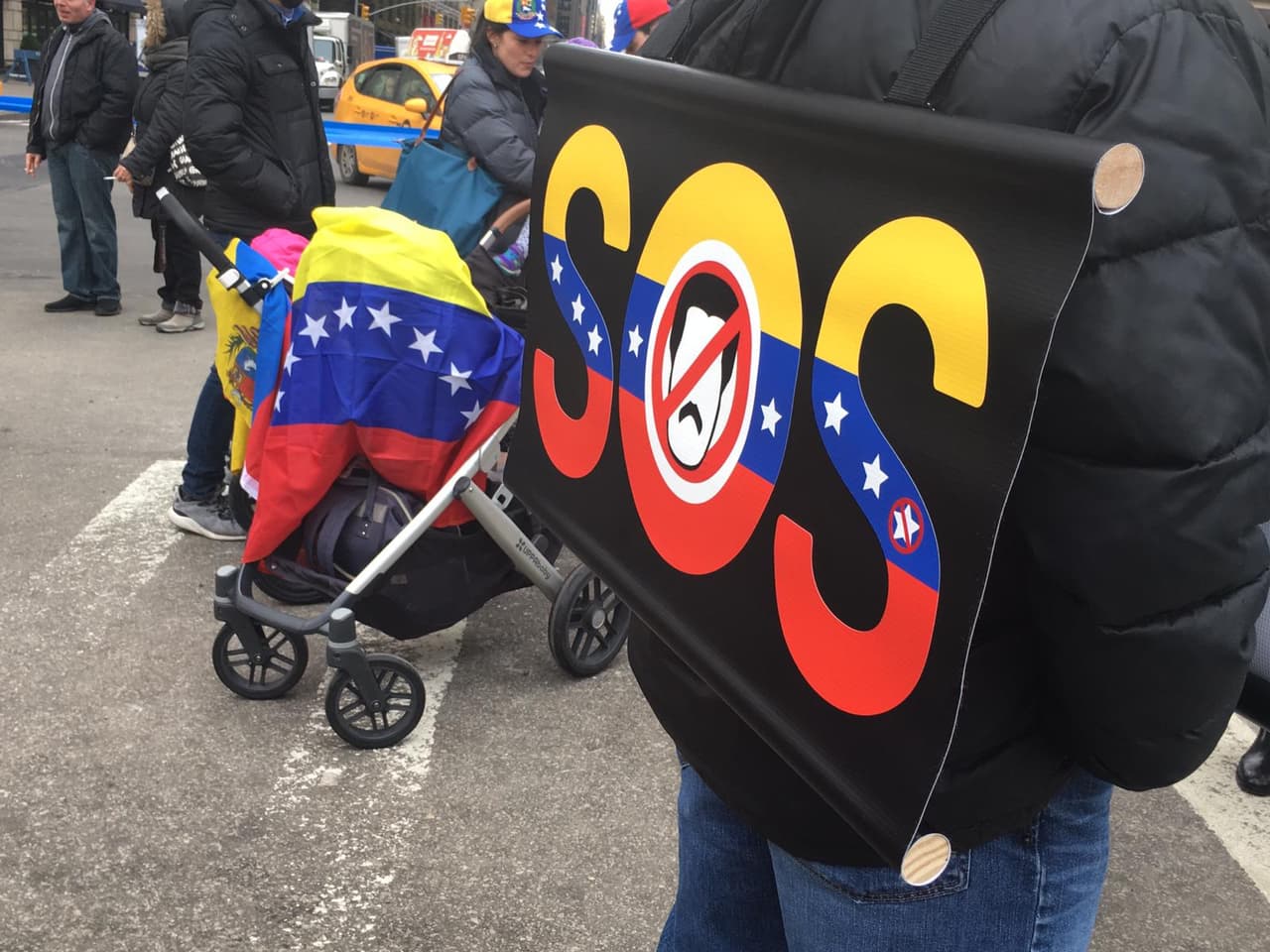 En medio de protestas masivas en la capital de Venezuela, varias personas tomaron a las calles de Manhattan hoy para protestar contra Nicolás Maduro.
