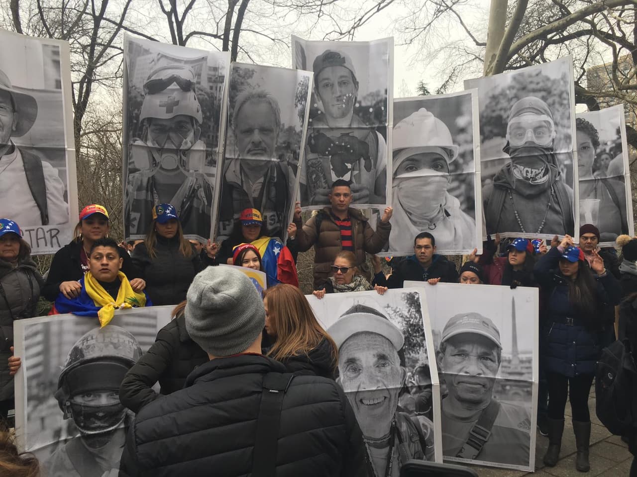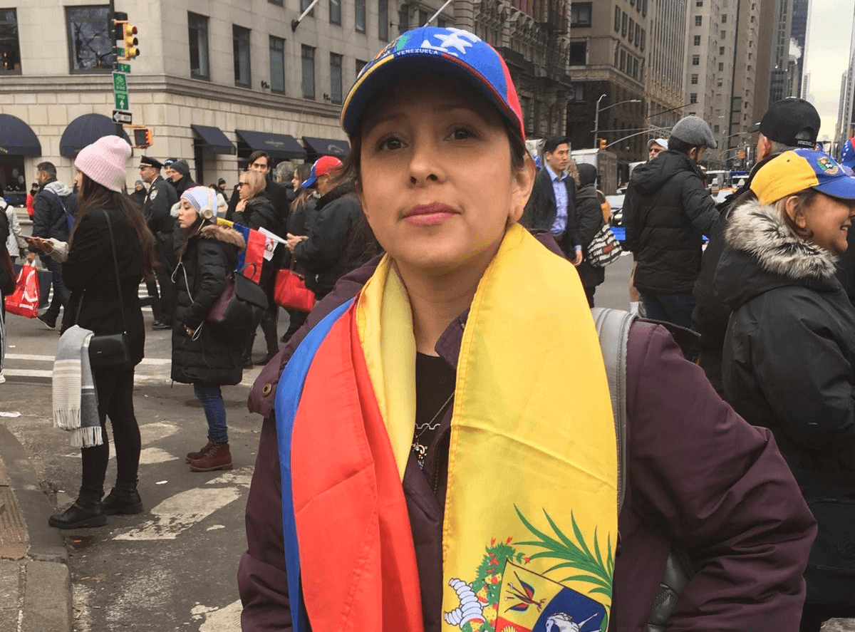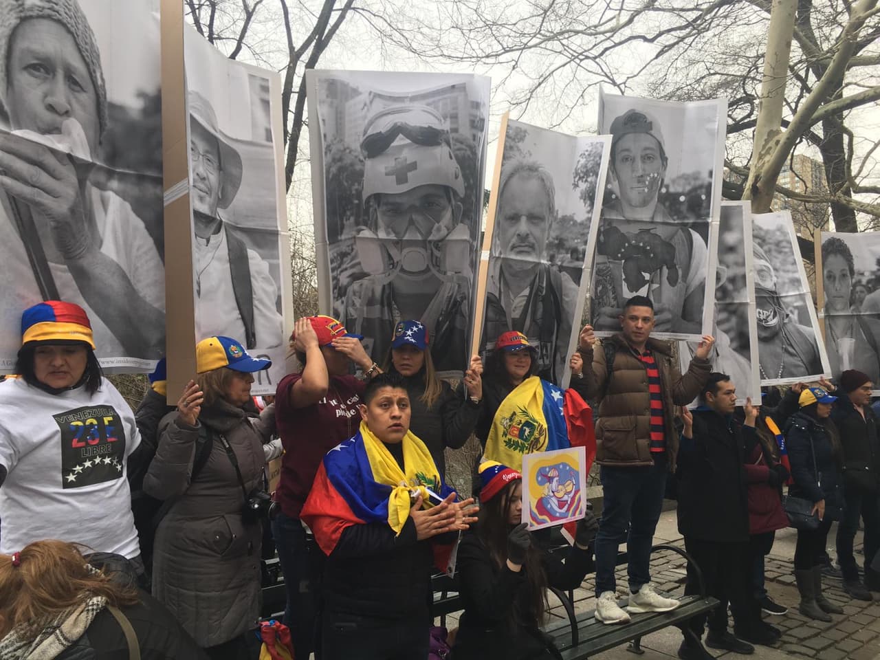 En medio de protestas masivas en la capital de Venezuela, varias personas tomaron a las calles de Manhattan hoy para protestar contra Nicolás Maduro.