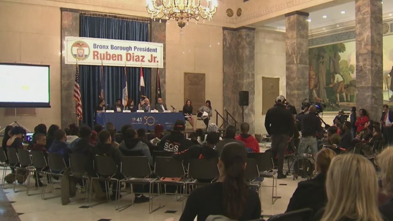 Líderes, autoridades y decenas de personas, entre las que se encuentran víctimas de violencia, asistieron al evento realizado por Univision 41, Waddo 1280, el departamento de educación y otras entidades en el Edifico Municipal de El Bronx.