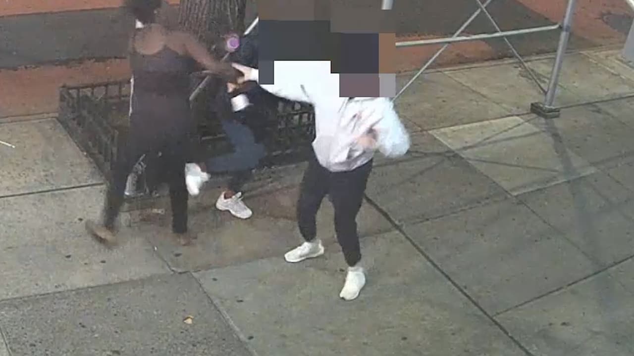 El ataque ocurrió alrededor de las 8:40 pm del domingo 2 de mayo frente al 411 de la calle 42 Oeste. Las imágenes muestran el momento una mujer de 31 años y otra de 29 años caminaban por la acera cuando fueron abordadas por una desconocida.