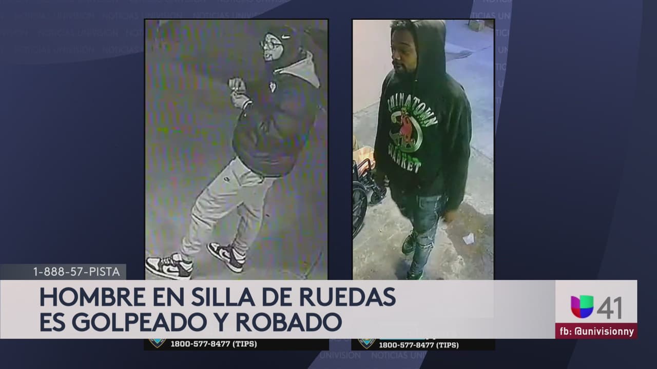 Un hombre en silla de ruedas fue robado por dos sujetos en una calle del Bronx. Cualquier información debe llamar al 1-888-57-PISTA (74782). La llamada es atendida en español y es confidencial, según las autoridades.