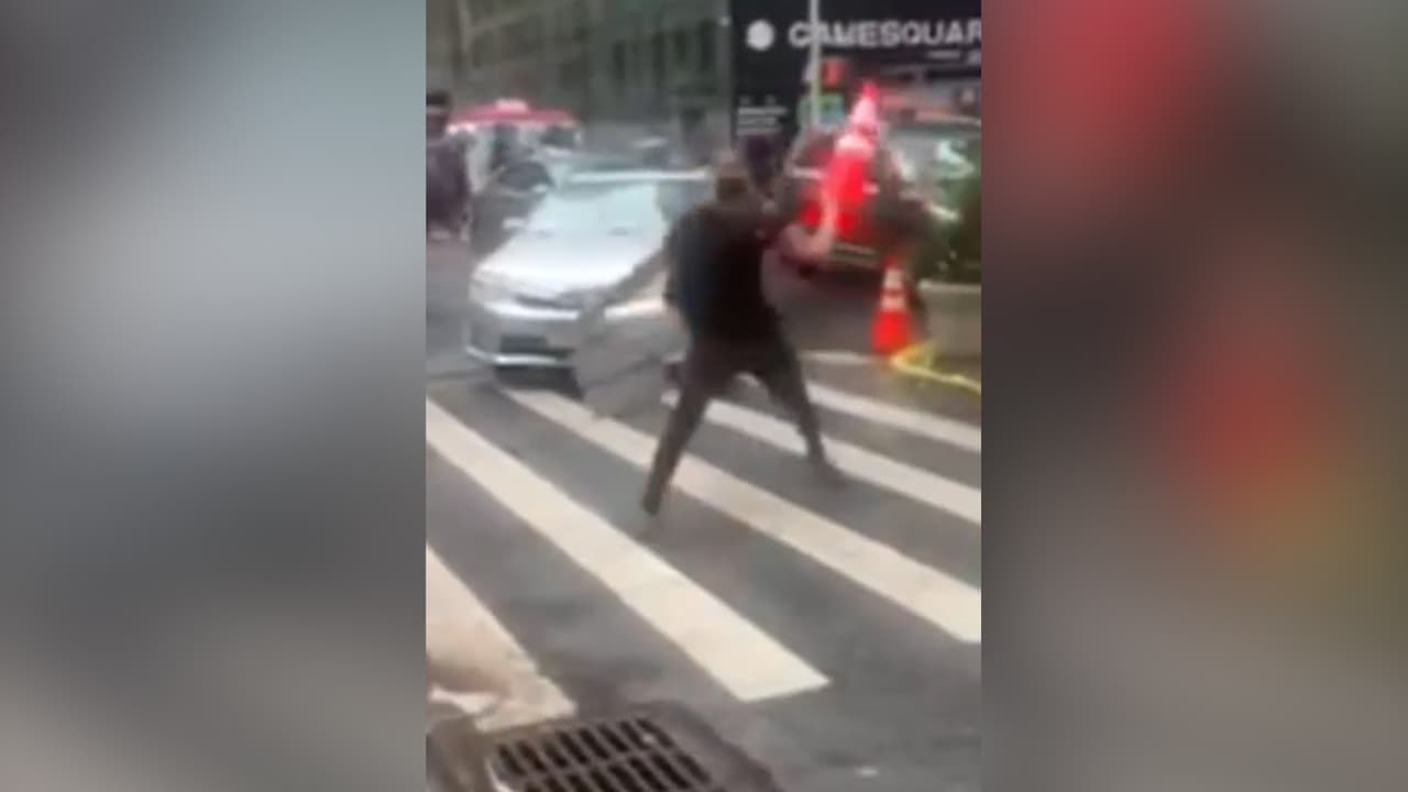 Hasta con los conos de tráfico: el ataque a un vendedor de comida de Times Square