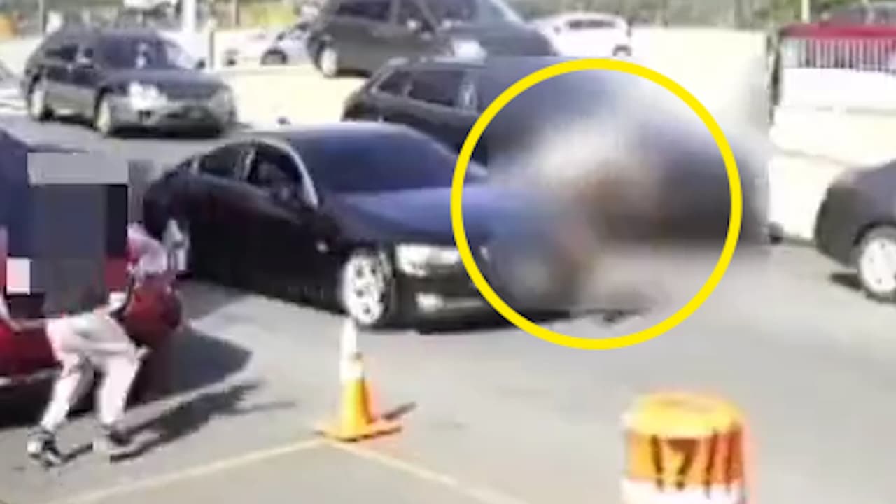 El conductor del coche se detiene un momento, pero luego se marcha como muestran las imágenes.