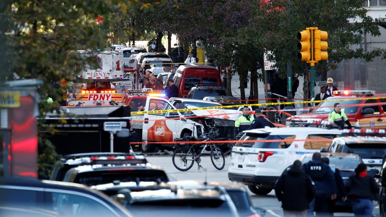"Un vehículo entró al carril de bicicletas en la Calle West, unos bloques al norte de la Calle Chambers. El vehículo siguió rumbo al sur, chocando otro vehículo. El sujeto salió del vehículo simulando hacer disparos. Fue herido por el NYPD", detalló el Departamento de Policía de Nueva York.