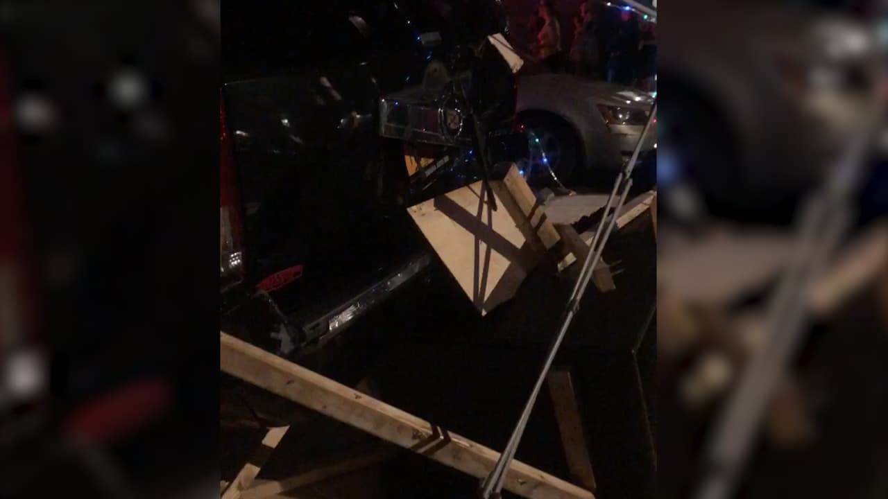 Tras el accidente de los dos vehículos, el Cadillac Escalade saltó a la acera y terminó impactando la valla de madera que rodea el área en la calle donde los restaurantes que no tienen terraza pueden situar sus mesas debido a la crisis por coronavirus.