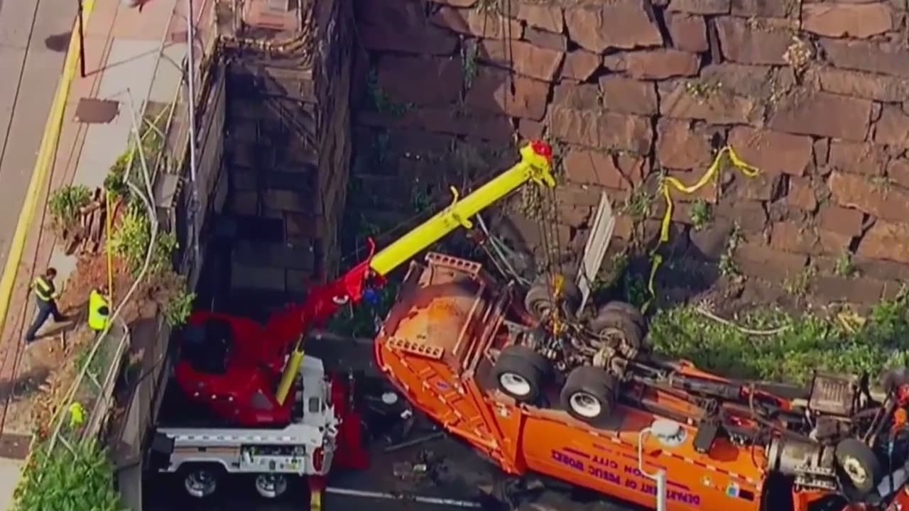 Un camión del Departamento de Obras Públicas se volcó la tarde del miércoles en la avenida Palisade, sobrepasando el Weehawken Turnpike, en la ruta 495 de camino al Túnel Lincoln. El accidente causó grandes problemas de tráfico en la zona.