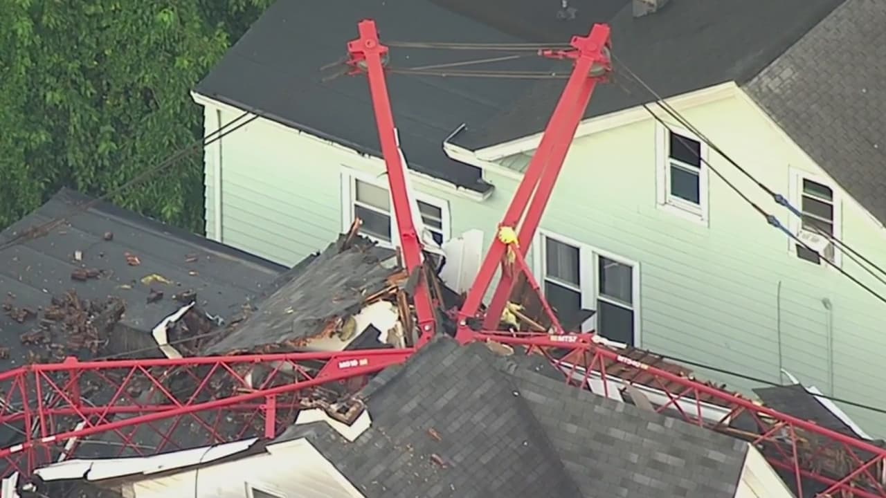 Autoridades trabajan para remover una grúa que colapsó sobre una vivienda en Nueva Jersey