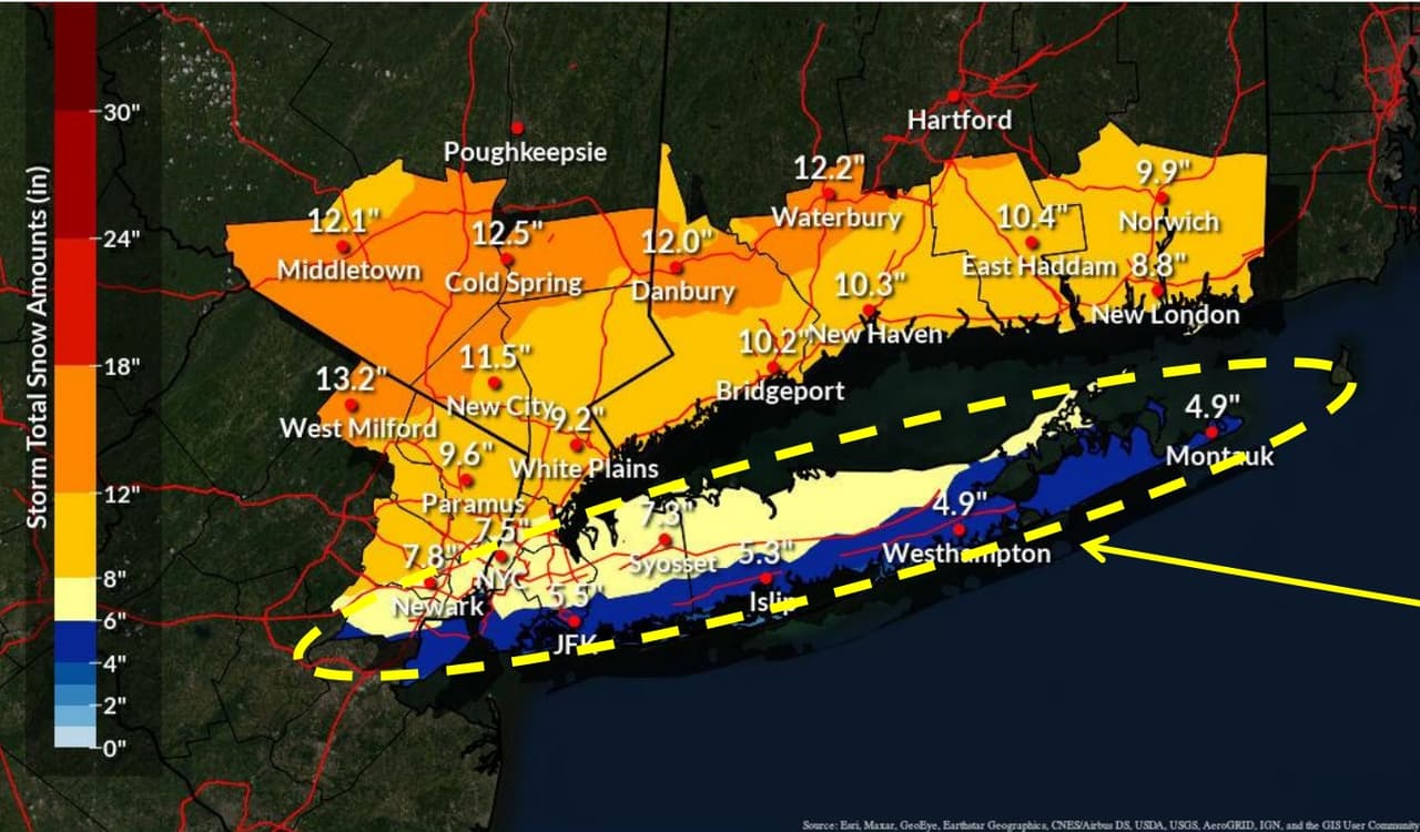 Stephanie Viés, meteoróloga de Los Guardianes del Tiempo, estimó que en zonas de Long Island y el condado de Orange se podrán esperar acumulados cercanos a las 12 pulgadas.