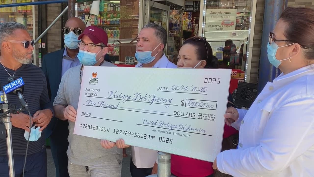 Daniel Melo, propietario de uno de los locales afectados en esta área de la ciudad de Nueva York a principios de junio, recibió un cheque de 5,000 dólares por parte de la Asociación de Bodegas Unidas de América, una agrupación que reúne a dueños de pequeños negocios en la Gran Manzana. “Muy agradecido por lo que han hecho”, expresó Melo.