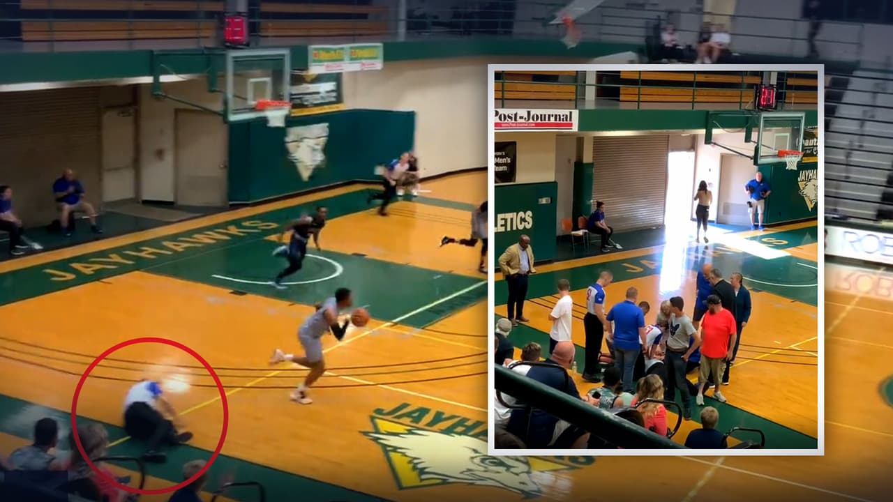 El heróico momento en que el basquetbolista le practica resucitación al árbitro quedó grabado en video. Afortunadamente, el árbitro se está recuperando y el equipo del héroe ganó el juego.