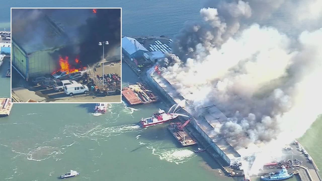 Bomberos siguen trabajando para controlar el incendio en un depósito de evidencias de la policía en Brooklyn