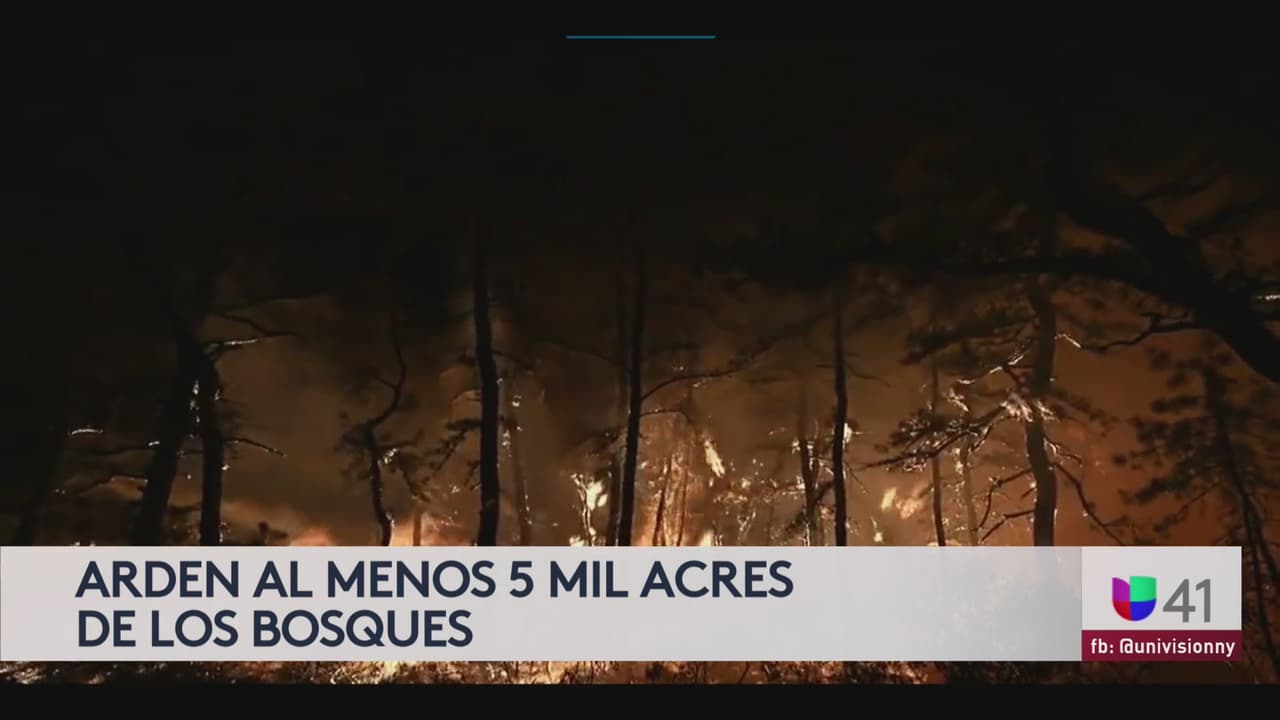 Al menos 5,000 acres del bosque Bass River han sido consumidos por el fuego. El incendio forestal inició la noche del pasado miércoles.