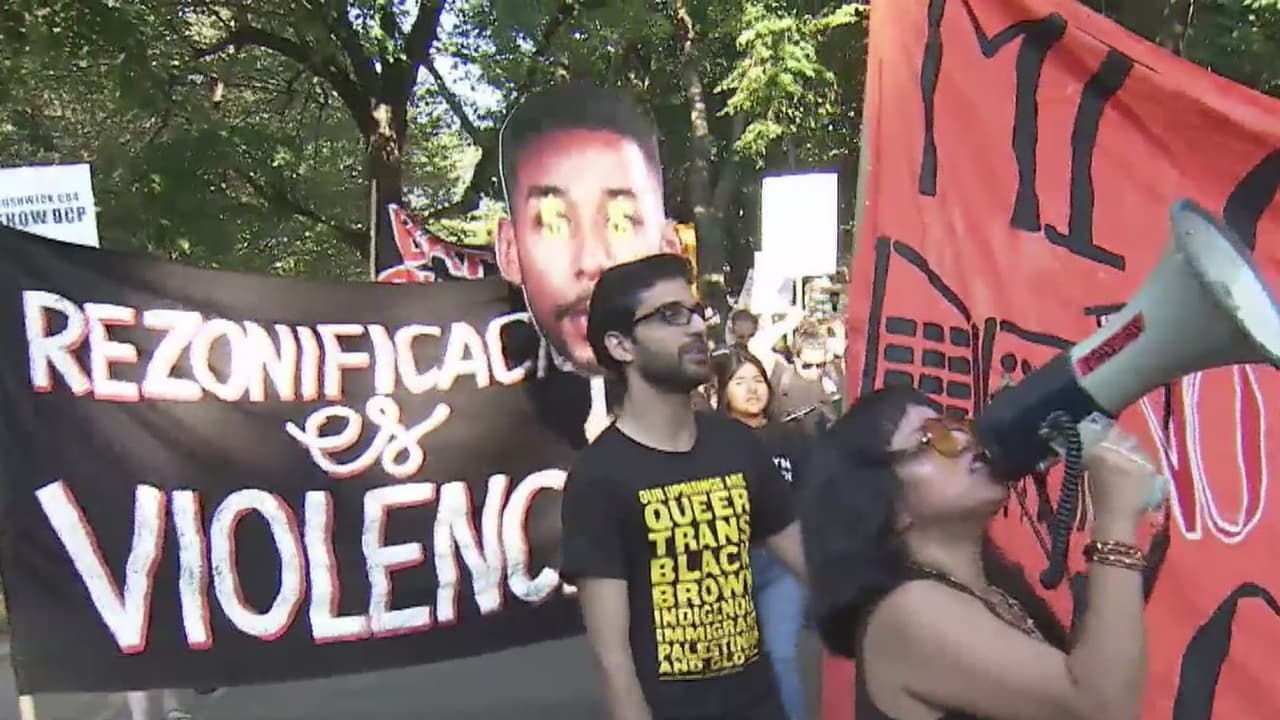 Activistas y miembros de distintas organizaciones realizaron una marcha para pedir acciones inmediatas por parte de políticos locales en contra de la rezonificación. Aseguran que temen por el desplazamiento y la falta de protección para familias e inquilinos.
