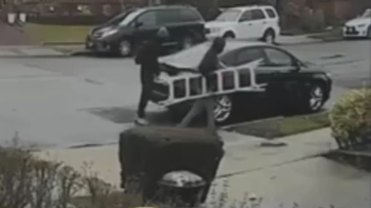 Utilizando una escalera y aprovechando la ausencia de los dueños, dos presuntos ladrones ingresaron a una vivienda de Queens y robaron miles de dólares en ropa y joyería.