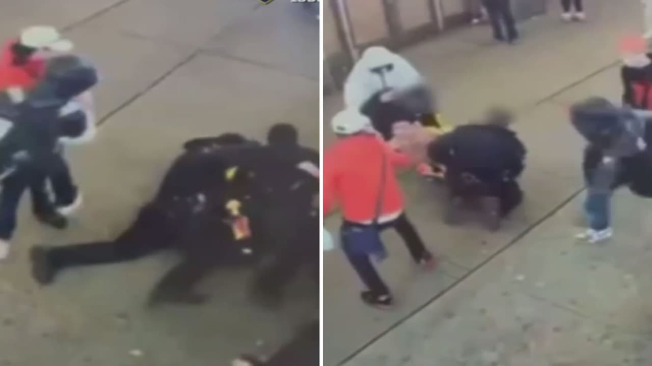Video Dos oficiales son agredidos por migrantes recién llegados a Nueva York: la golpiza quedó captada en video
