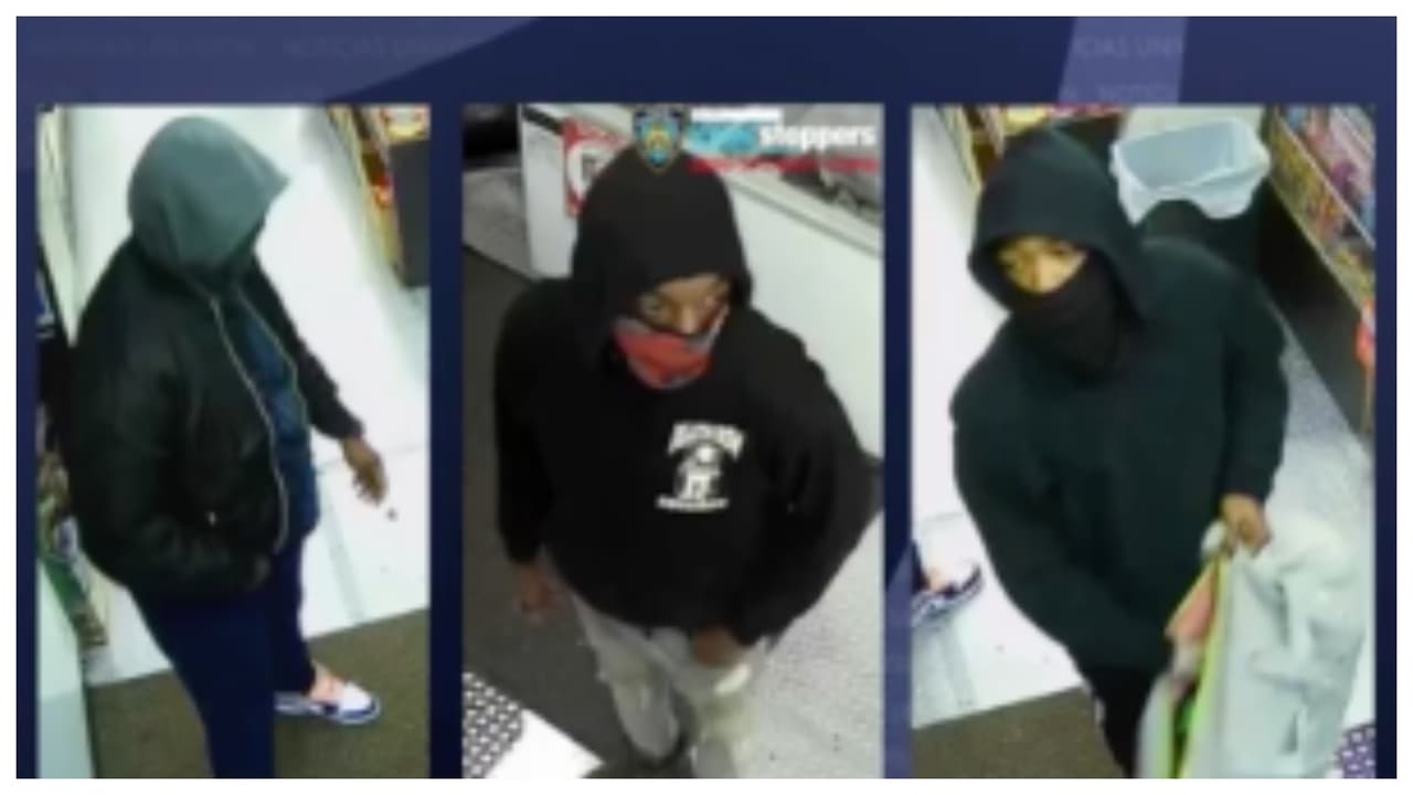 Estos tres hombres son señalados por la Policía de robar dinero en efectivo, productos de tabaco y dulces en una tienda de comestibles en Queens.