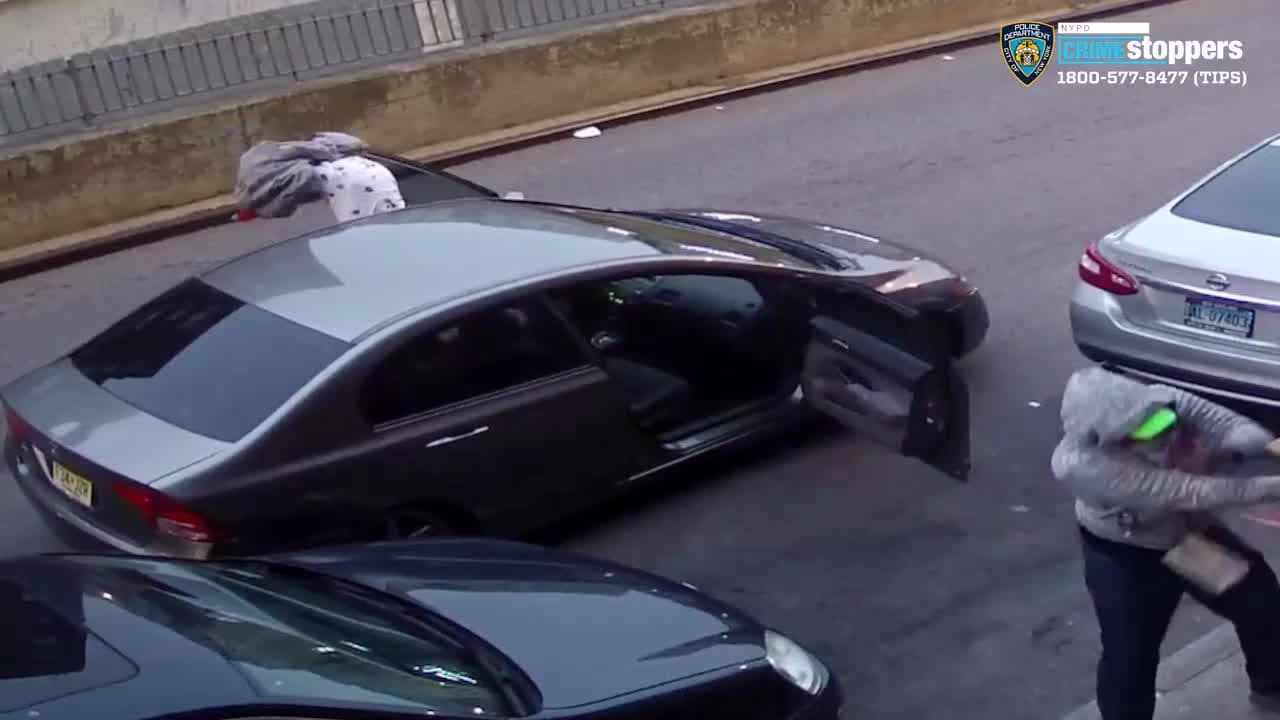 El video de los dos ladrones en El Bronx arrebatándole el teléfono celular a la víctima y lanzándola a la calle cuando ella intentaba recuperarlo, fue revelado por la policía.