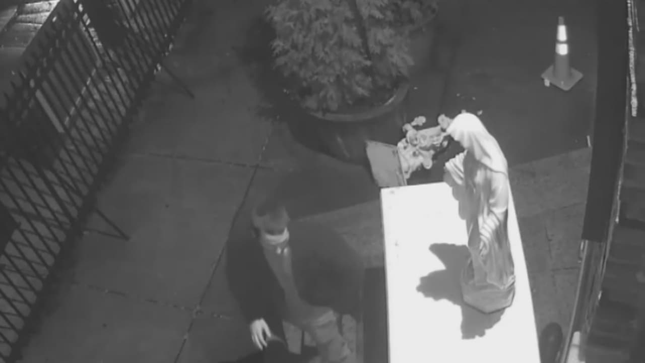 Buscan al sospechoso de vandalizar estatuas religiosas en una iglesia católica de Brooklyn