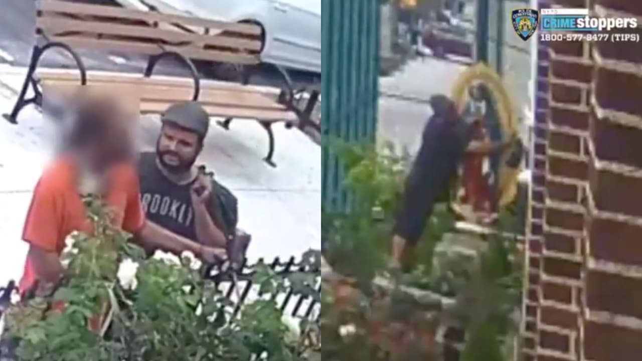 Buscan al sospechoso de vandalizar una estatua de la Virgen de Guadalupe afuera de una iglesia en Brooklyn