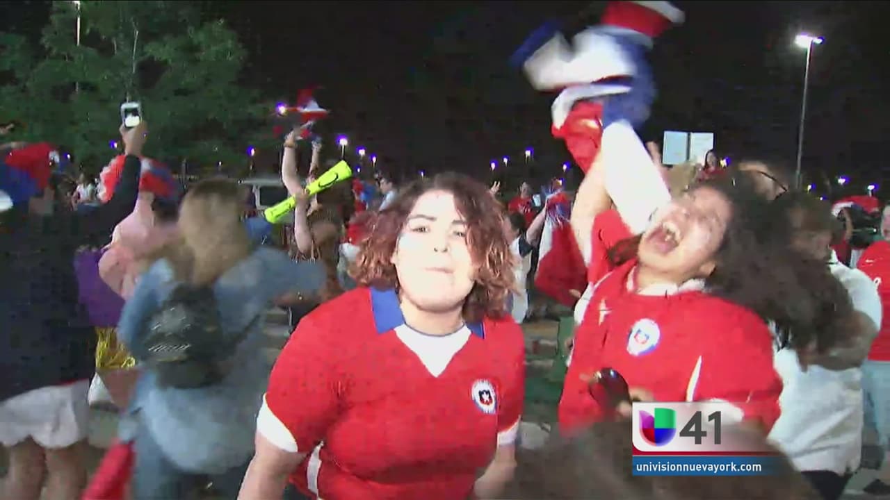 Los fanáticos chilenos fuera del estadio Metlife estallaron en júbilo al saber que su selección había ganado la Copa América Centenario.