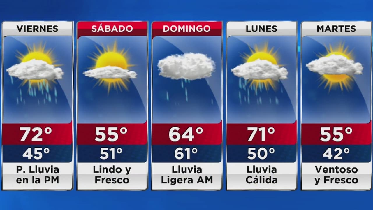 El día será mayormente despejado, pero en la tarde aumentará la nubosidad y las probabilidades de lluvia. La temperatura estará por encima de lo esperado para esta temporada, con una máxima de 72 grados.