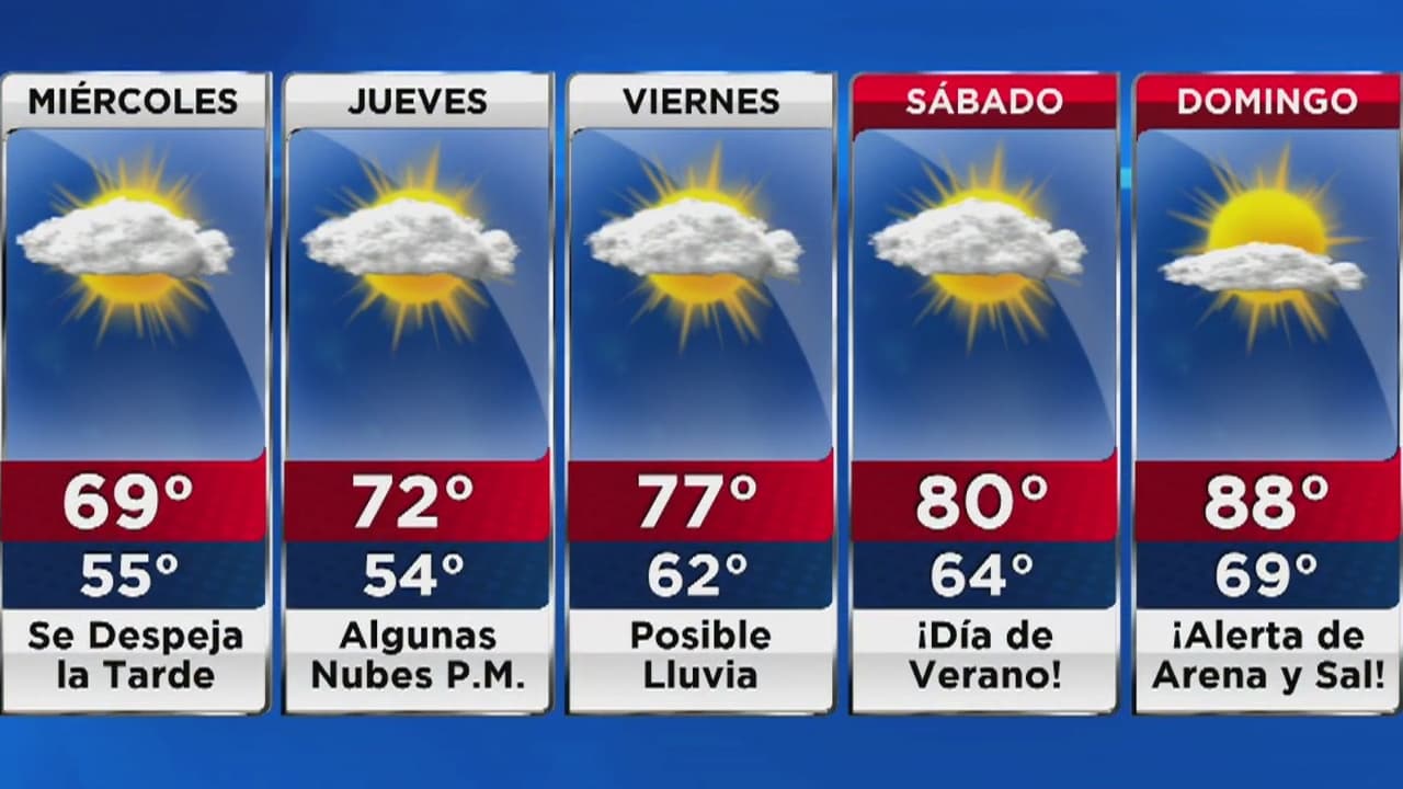 Luego de varios días lluviosos el cielo se despeja un poco, pero en horas de la tarde. La temperatura máxima será de 69 grados, y en la noche baja a los 55 grados y vuelve la nubosidad.