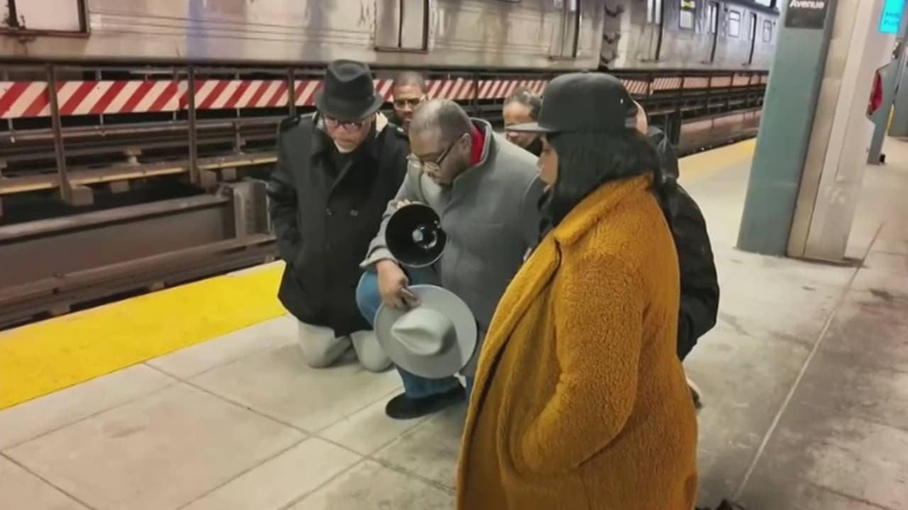De rodillas y en oración, el reverendo Kevin McCall y otros líderes comunitarios clamaron por auxilio divino para que un incidente similar no se repita jamás en la estación Coney Island-Stillwell Avenue.