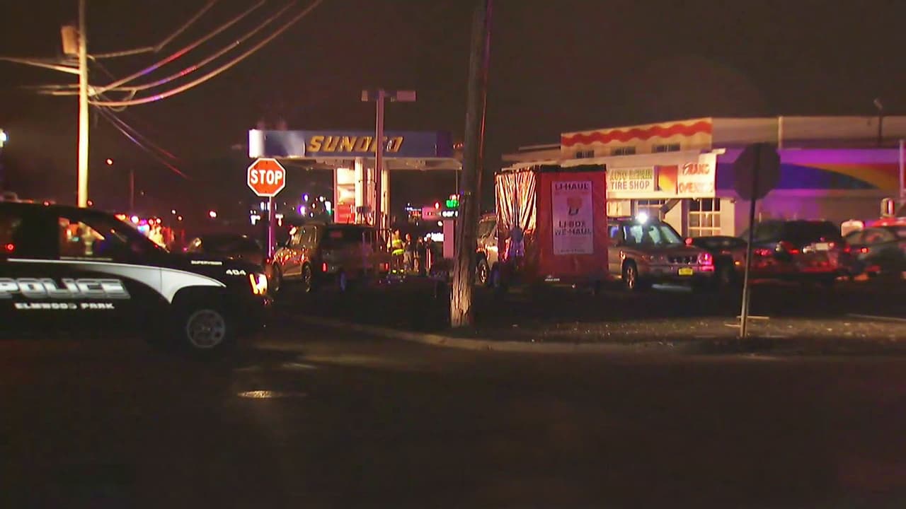 Combaten incendio en una estación de gasolina de Elmwood Park, Nueva Jersey