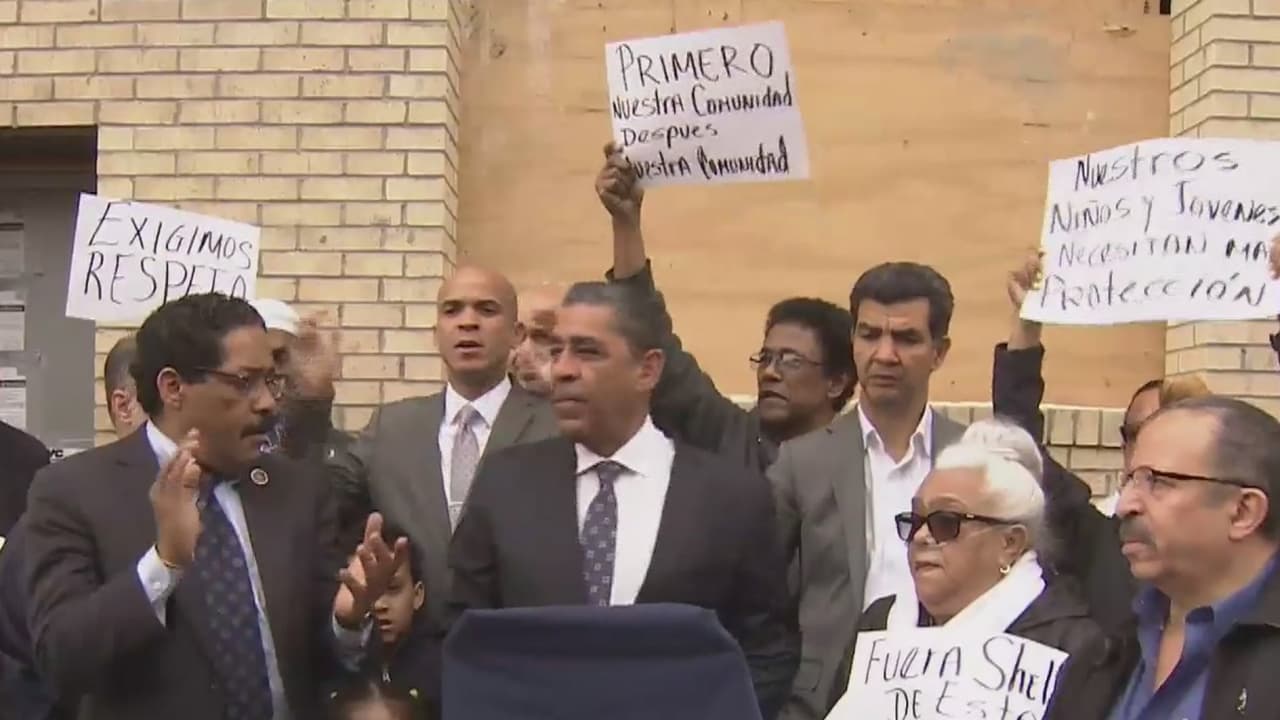 Acompañados de líderes políticos, decenas de personas se congregaron para manifestar se descontento con el plan del alcalde Bill de Blasio de abrir 90 refugios en cinco condados para antes del año 2020.