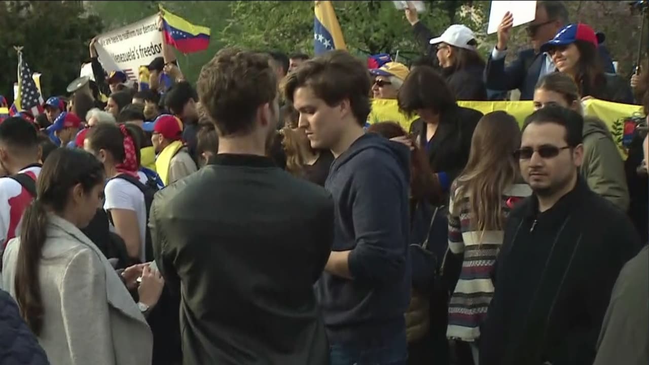 Con banderas, lágrimas y abrazos, venezolanos se reúnen en Union Square para apoyar el movimiento de Guaidó