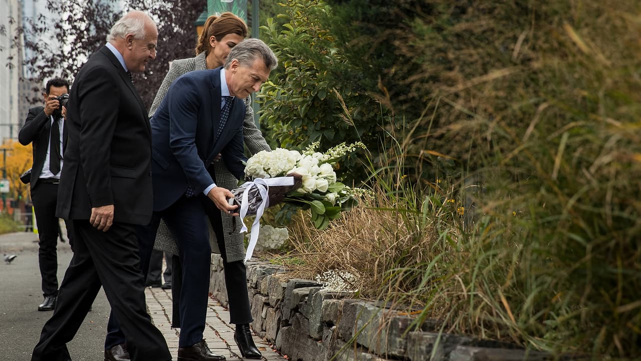 Con flores y un llamado a la paz, el presidente de Argentina honró a víctimas del ataque en Manhattan