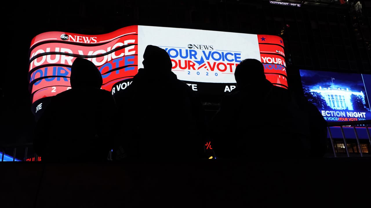 Con música, baile y banderas: así esperan varias personas los resultados electorales en Times Square