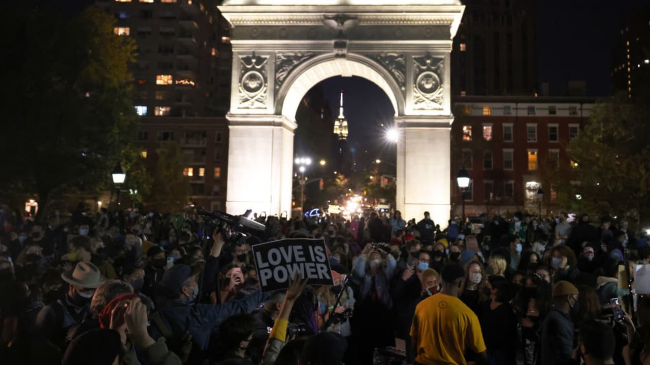 Este viernes, decenas de seguidores del candidato demócrata se reunieron en Washington Square Park, pese a que aún no se conoce quién ocupará la Casa Blanca, para festejar el posible triunfo de Biden. "Los números están mostrando que hay una gran posibilidad de que gane, la gente está desesperada por un cambio ya", dijo una asistente a la jornada que estuvo marcada por múltiples expresiones artísticas.