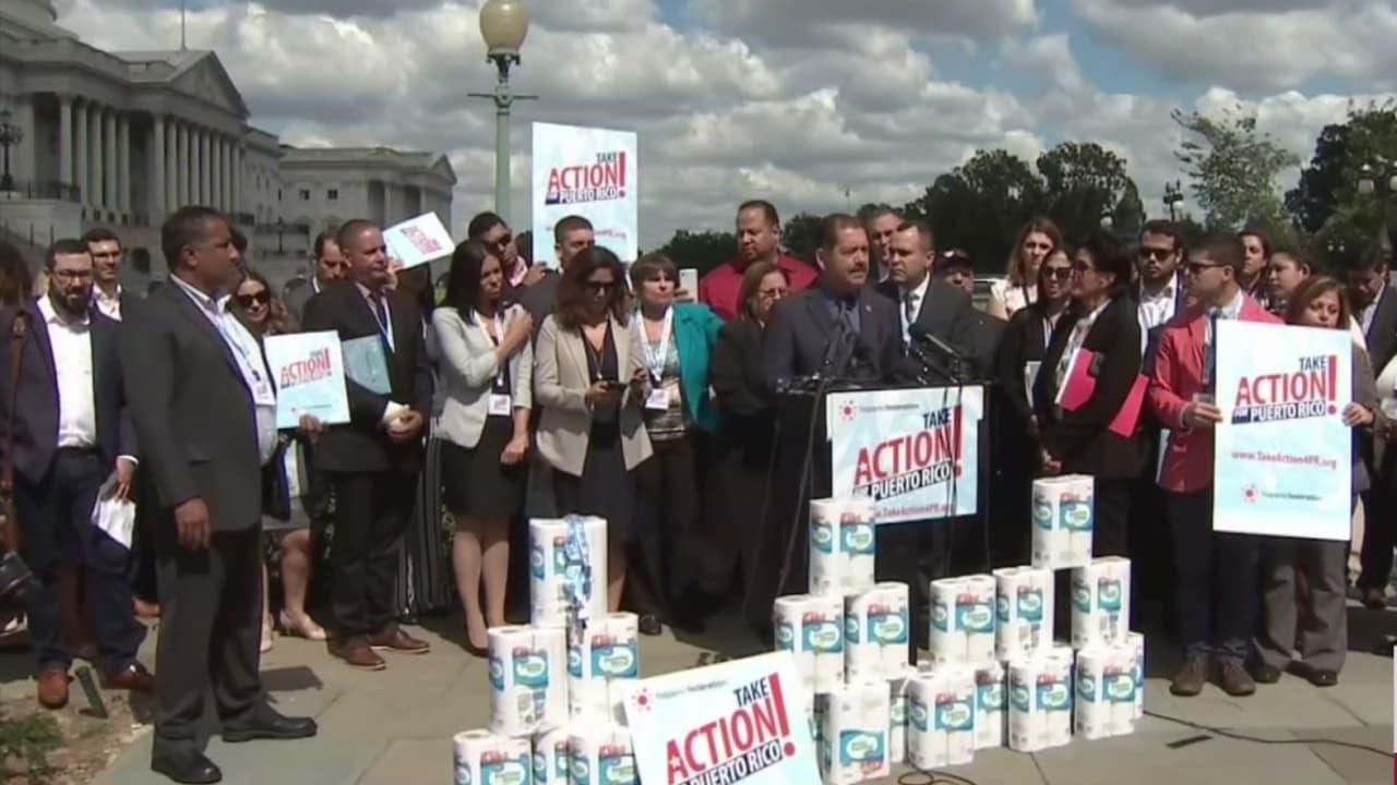 Congresistas y activistas se reunieron a las afueras del Capitolio para pedir acciones a favor de la isla a dos años del devastador paso del fenómeno, esto luego de que el gobierno le quitara fondos a Puerto Rico y los destinara al muro fronterizo. La manifestación contó con la exhibición de rollos de papel, recordando el momento en el que Trump lanzó algunos de estos para los damnificados en San Juan.