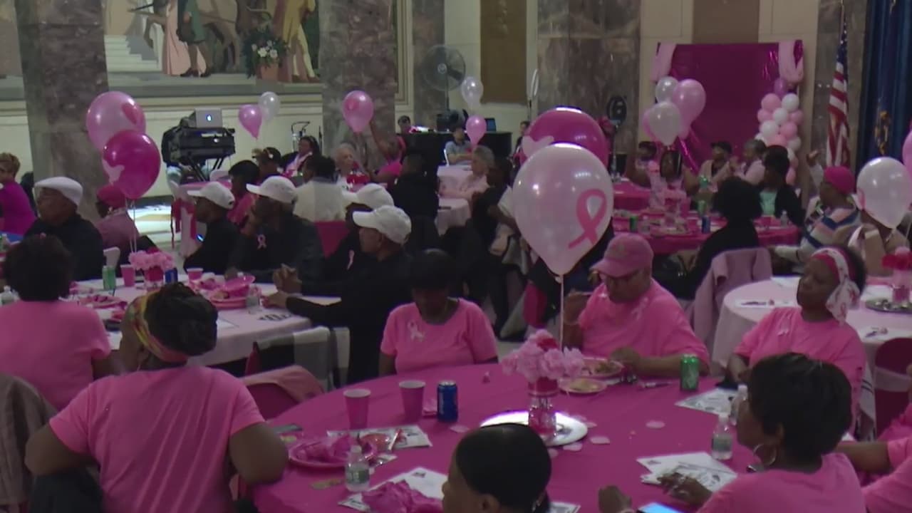 Vestidas de rosado y bailando, así llegaron este martes varias personas que padecieron esta enfermedad hasta el sector de Concourse. Durante la jornada, algunos asistentes contaron su historia de superación. Este es el sexto almuerzo que se realiza gracias a fondos proporcionados por el condado y auspiciadores como la Sociedad Americana contra el Cáncer.