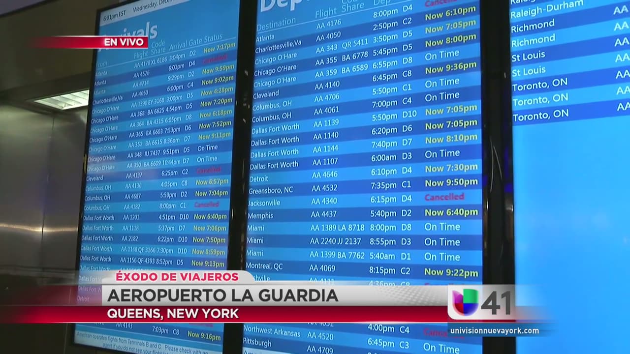 Aunque no hay nieve, la lluvia a ocasionado el retraso y cancelación de varios vuelos en los aeropuertos de NY.
