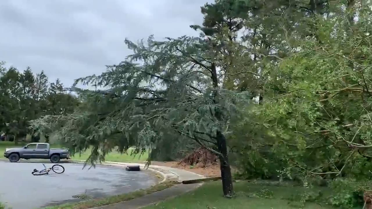 Varios videos publicados en redes sociales muestran a la nube en forma de embudo que gira en el suelo. Algunos daños relacionados fueron reportados.