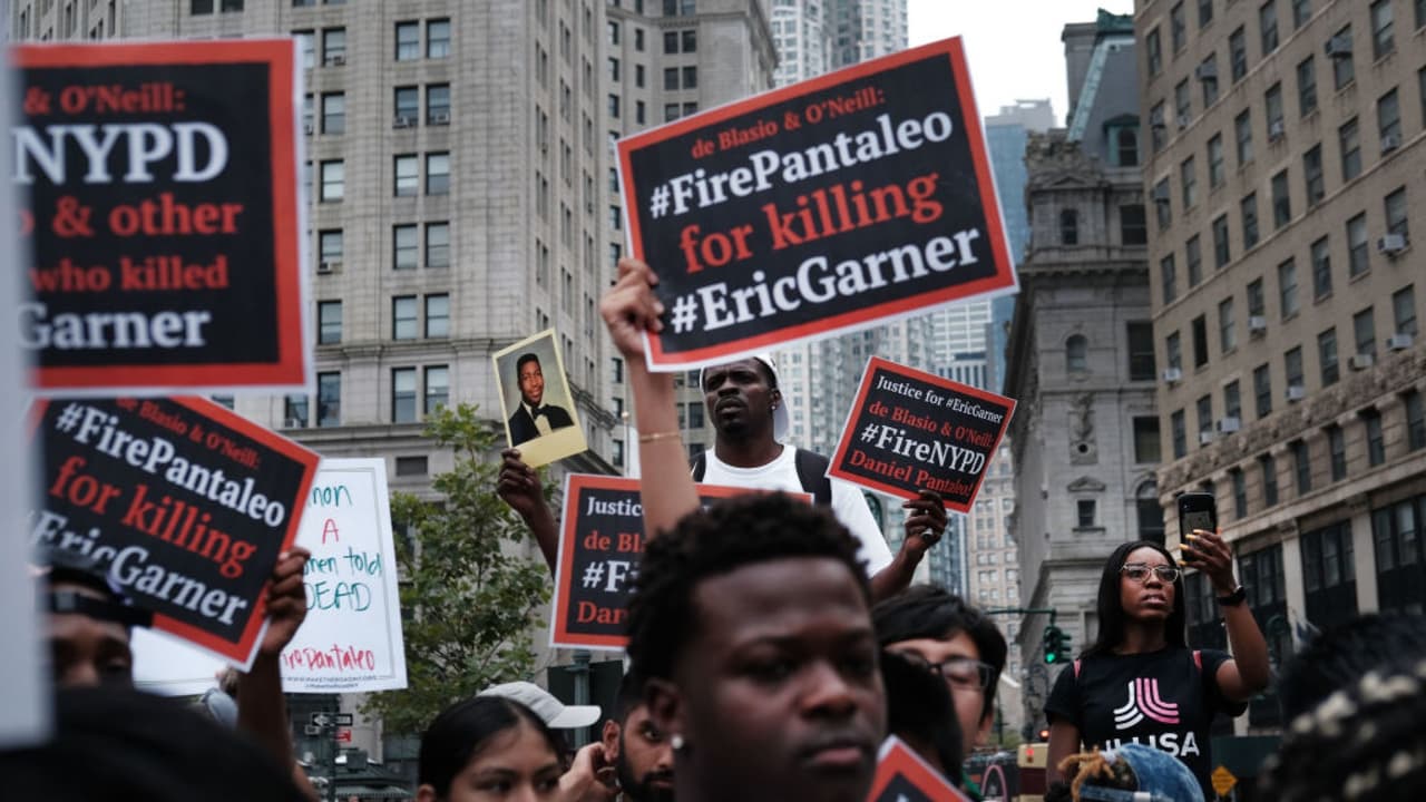 La manifestación se llevó a cabo un día después de que el Departamento de Justicia anunciara que no presentaría cargos de derechos civiles contra el agente Daniel Pantaleo, quien era acusado de colocar a Garner en un estrangulamiento ilegal que contribuyó a su muerte en 2014.