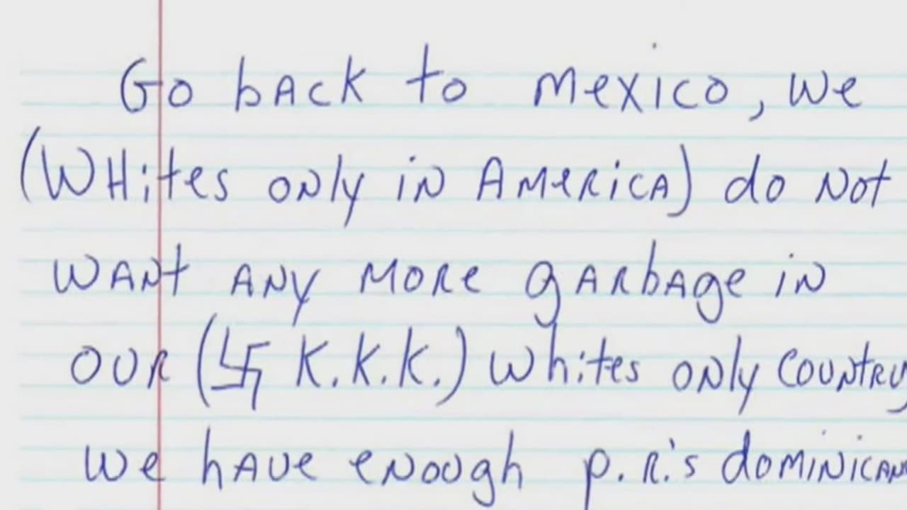 El diplomático hizo pública la carta la cual dice que en EEUU hay muchos puertorriqueños, dominicanos, cubanos, colombianos y agrega que los mexicanos deberían regresar a Juárez a “descuartizar más narcotraficantes”. Este nuevo incidente de odio ha generado el rechazo de muchos en Nueva York.