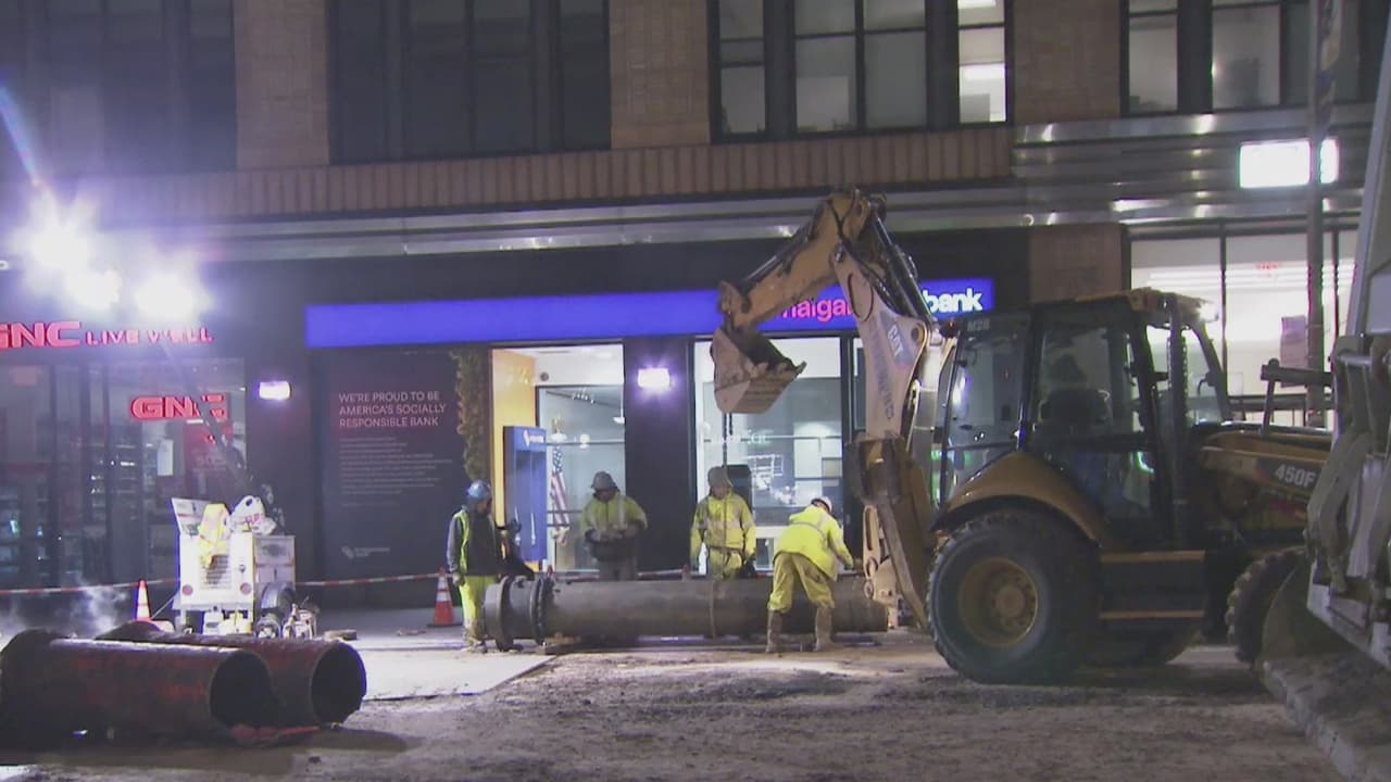 Continúan los arreglos por la ruptura de una tubería en el área de Chelsea en Manhattan