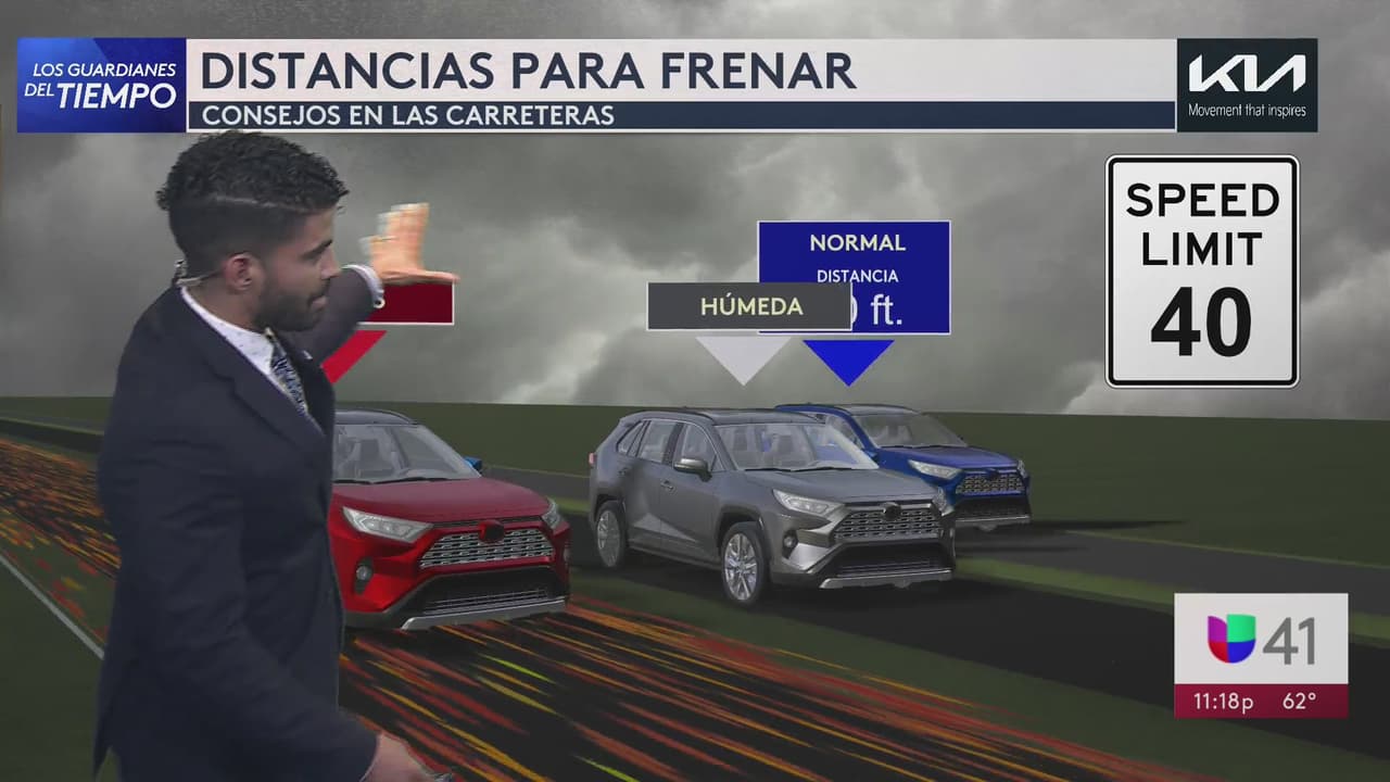 La distancia entre su auto y el carro de adelante varía según las condiciones del tiempo. No es lo mismo manejar en carreteras normales, húmedas o con hojas en el suelo como ocurre en Otoño.