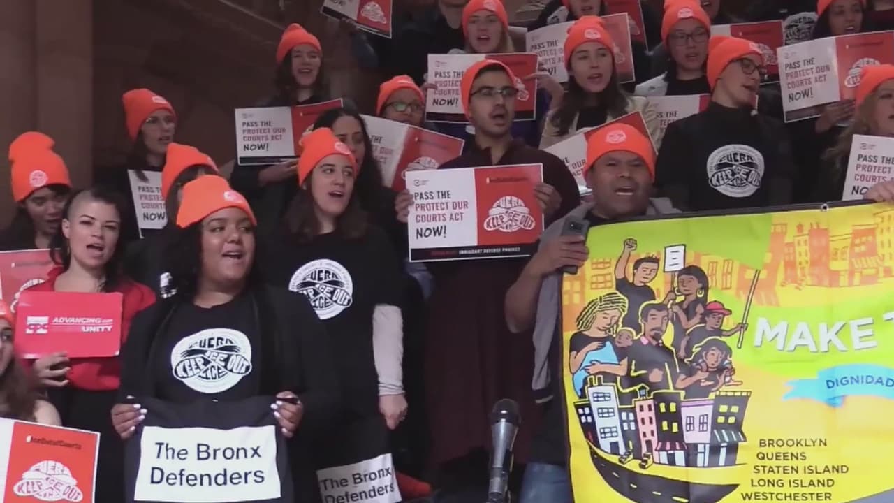 Decenas de manifestantes llegaron hasta el Capitolio del estado de Nueva York, en Albany, para pedir que se apruebe la Ley de Protección de Tribunales, la cual dicta que los agentes del Servicio de Inmigración y Control de Aduanas de Estados Unidos (ICE) no pueden detener a los inmigrantes dentro o fuera de las cortes del estado o en sus alrededores.
