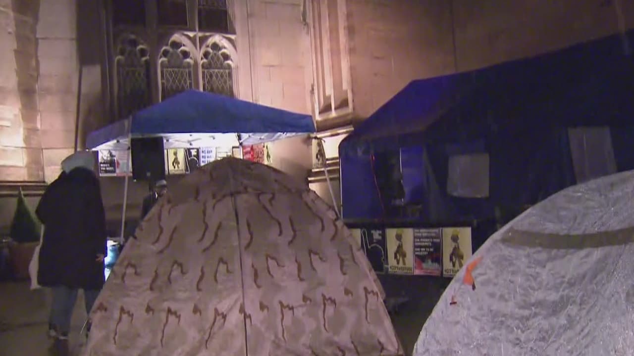 Los manifestantes instalaron carpas en el Bajo Manhattan desde la noche del martes, rechazando la orden del presidente Trump de prohibir la entrada de personas de seis países mayormente musulmanes.