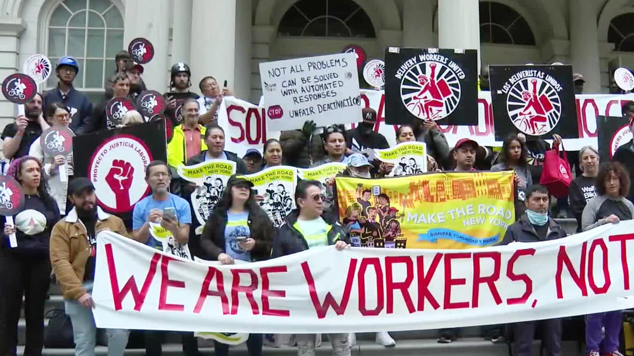 Deliveristas protestan frente a la alcaldía de Nueva York: así piden detener excesivas multas
