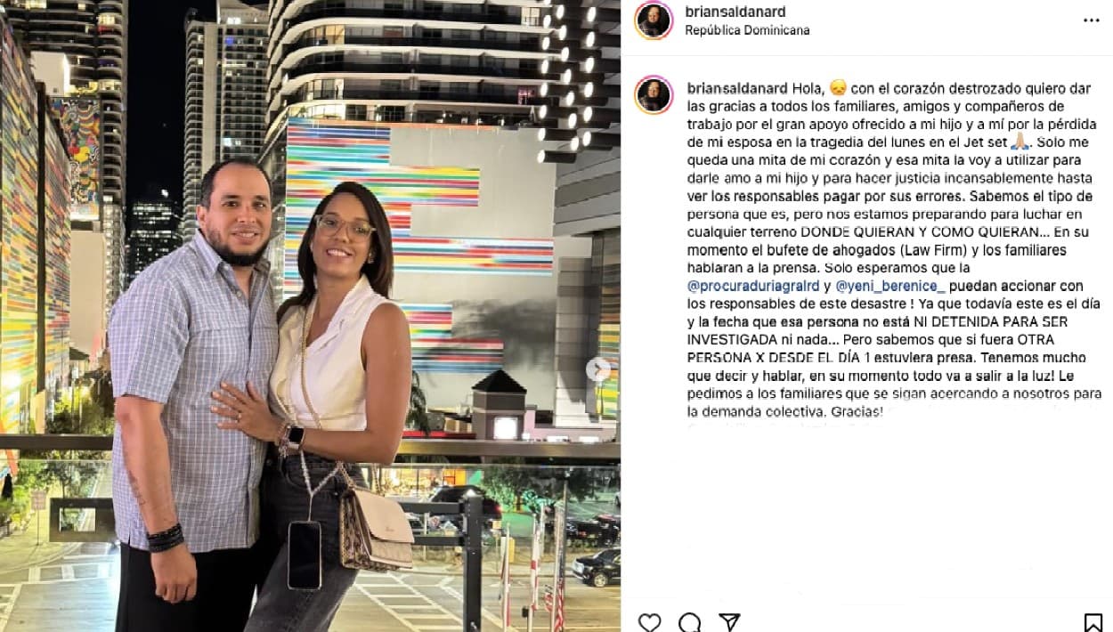A través de las redes sociales, el director creativo Brian Saldaña, quien perdió en la tragedia a su esposa y madre de su hijo, Ruth Elisa Seija Jerez, informó que está preparando, junto a sus abogados del bufete Law Firm, una demanda colectiva para buscar justicia ante lo que considera un acto de negligencia.