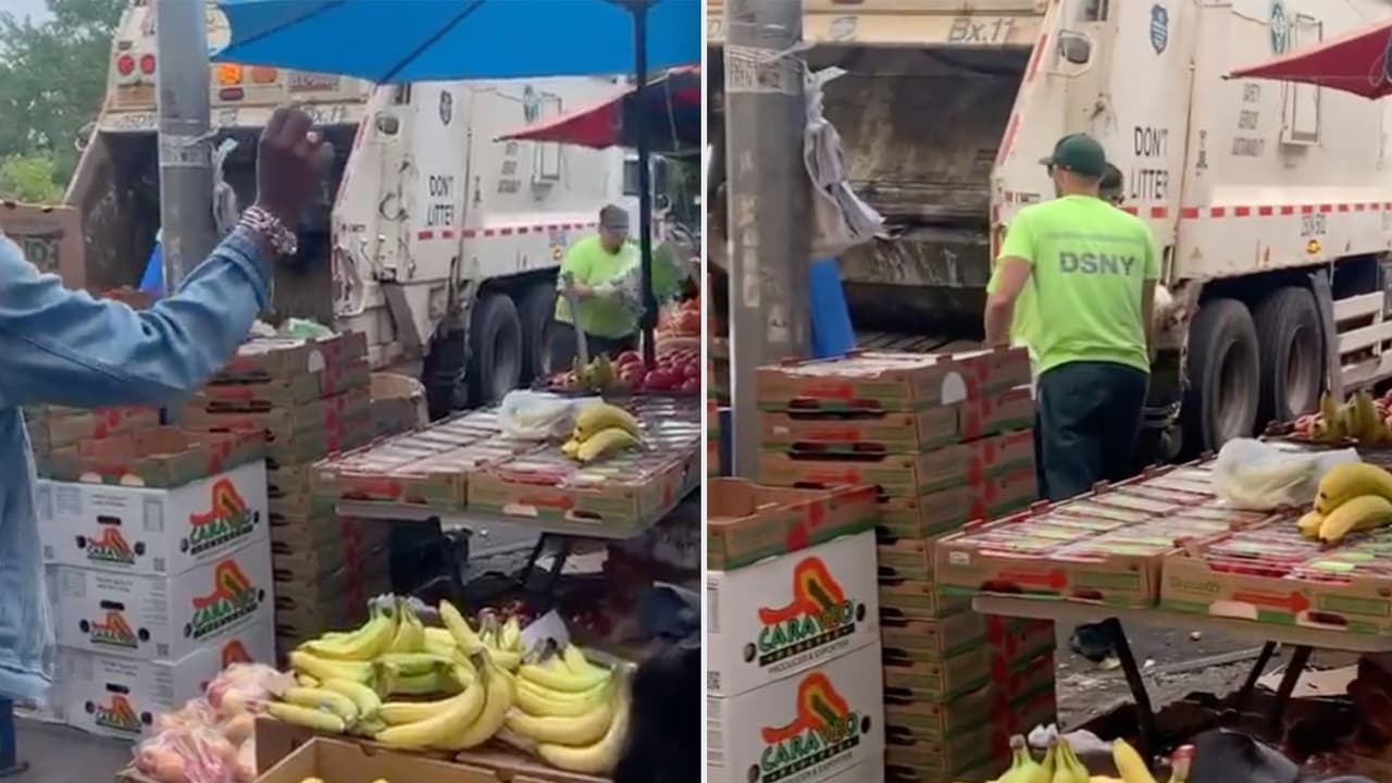 Policías y trabajadores del Departamento de Sanidad de la ciudad fueron captados en video mientras retiraban cajas llenas de frutas y verduras de un puesto de comida ambulante, ante los reclamos de miembros de la comunidad que, molestos, les pedían que pararan.