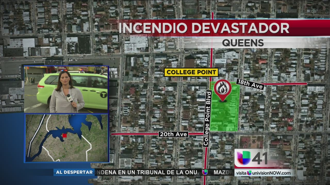 Un numeroso grupo de personas lo perdieron todo en el siniestro que se desató en las cercanías de College Point en Queens.