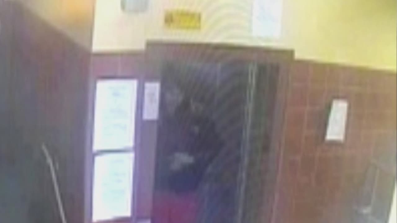 Cámaras de seguridad captaron al hombre que es buscado por una bala perdida que fue a parar al pizarrón de un salón escolar el pasado martes.