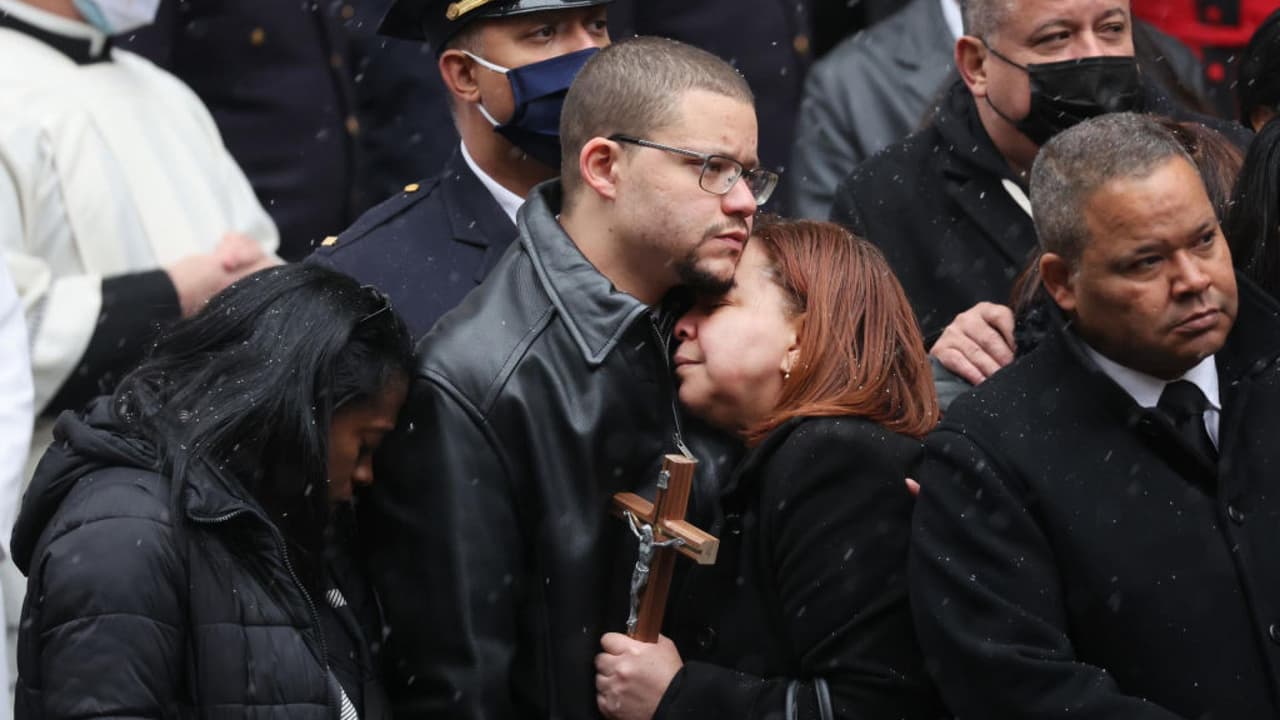 El funeral del oficial dominicano de 22 años, quien murió tras ser baleado hace exactamente una semana en Harlem, se llevó a cabo este viernes en la Catedral San Patricio. "El sistema continúa fallándonos, ya no estamos seguros, ni siquiera los oficiales que prestan servicio", fueron algunas de las palabras que expresó en medio del llanto la viuda de Rivera durante la ceremonia.